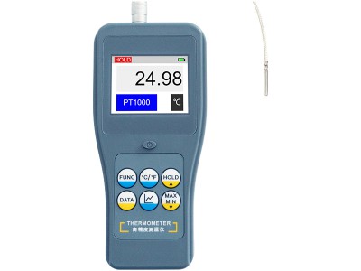 本仪器是一款使用PT1000/PT100铂热电阻作为传感器测量温度信号的高精度电阻测温仪。大彩色液晶屏显示,,0.01°C/°F高显示分辨率,测量精度可达±0.1°C。具有实时测温曲线显示功能。具有数据存储与查询功能。广泛应用于工业生产、研发实验、食品加工、冷藏存储、精密测温等多种温度测量场合。